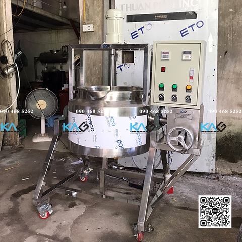 Nồi chưng mắm tép 50L có thể sao, rang, đảo trộn liên tục trong nhiều giờ và cho ra sản phẩm đồng đều bởi thiết kế truyền nhiệt gián tiếp ngăn khê cháy cùng motor quay bền bỉ.