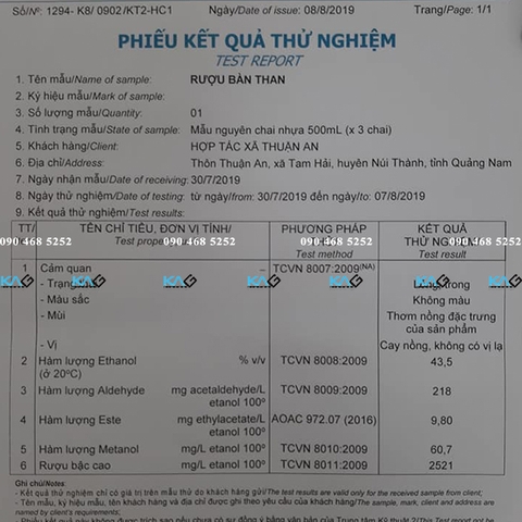 Các mẫu rượu đã sử dụng Máy lọc khử độc tố rượu của KAG Việt Nam rồi được đưa đi kiểm nghiệm tại các đơn vị uy tín, cho kết quả là hàm lượng các chất độc giảm, giữ nguyên độ cồn rượu và không làm mất hương vị, thậm chí làm rượu êm và dễ uống hơn.