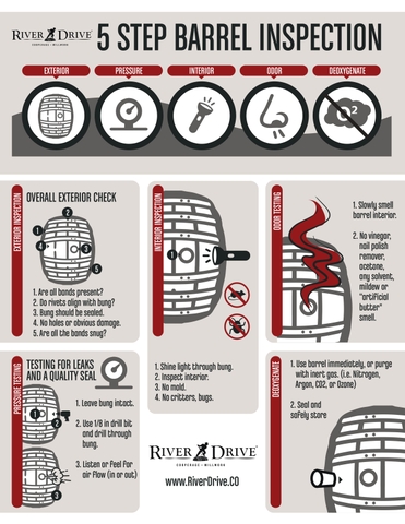 Quan sát bằng mắt thường để xác định gỗ là gỗ sồi hay không, các thanh gỗ có ghép chặt vào nhau không. Tiếp theo là tới các đai kim loại và đinh tán có được đóng chặt cố định vào thùng không. Tiếp đó, xem nút gỗ ở thân thùng sồi có khớp không, có thể bịt kín không, tránh oxy tiếp xúc với rượu ủ bên trong bom.